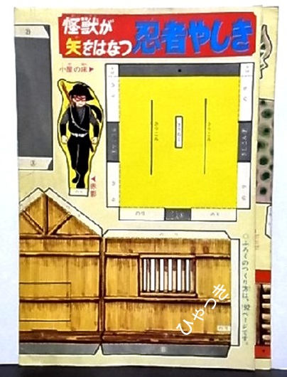 怪獣が矢を発射するギミック付きの忍者屋敷。 当時はウルトラマンのテレビ放送が開始していて大変な怪獣ブームだったので、怪獣を登場させたのだろう。 なお、この付録がついていたのは、「伊賀の影丸地獄谷金山の巻後編」だったが、伊賀の影丸の連載は終了しており、新たに連載が開始していた仮面の忍者赤影のキャラクターが使われている。