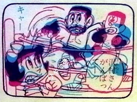 | カラーテレビ劇場 それぞれのカードを束にしてぱらぱらとめくるとアニメのように画が動く。 「サスケ忍法必殺フィルム」 ![]() ![]() ![]() |