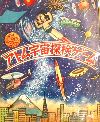 | マトに弾が当たるとアトムが飛び出すというもの。 昭和30年代の組み立て付録には、ピストルやライフルのような拳銃物とロケット、飛行機のような飛行物が定期的に付けられた。これは、拳銃物に当時人気だったアトムを組み合わせた付録。 |