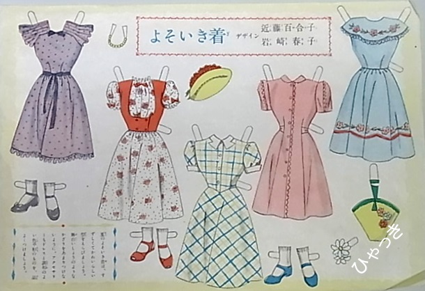 少女クラブの紙製着せかえ人形の付録。駄玩具でもよくある形式だが、中村星果・案となっているのは、背景のジオラマの部分がオリジナルアイデアということか?