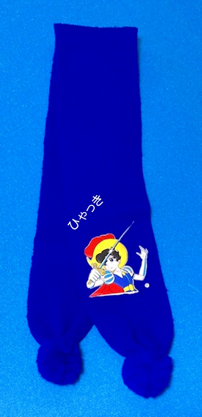| リボンの騎士マフラー(2) 版権は確認できますがメーカーは不明。絵柄は下で紹介しているスカーフ(マフラー)のものに類似しているので同じメーカーかもしれません。 イラストはビニールのシートが張り付けられた構造です。 |