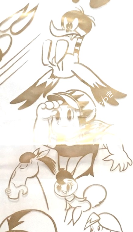 「お多福漫画サンダルの袋」 メーカー:お多福 いくつかのキャラクターをまとめて描いています。