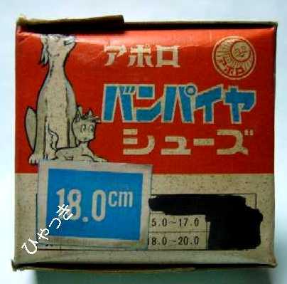 アポロ(岡本理研殿のシューズのブランド名のようです。)のバンパイヤシューズです。貴重なバンパイヤ関連グッズのひとつです。特に描かれている絵がすばらしいので紹介します。
