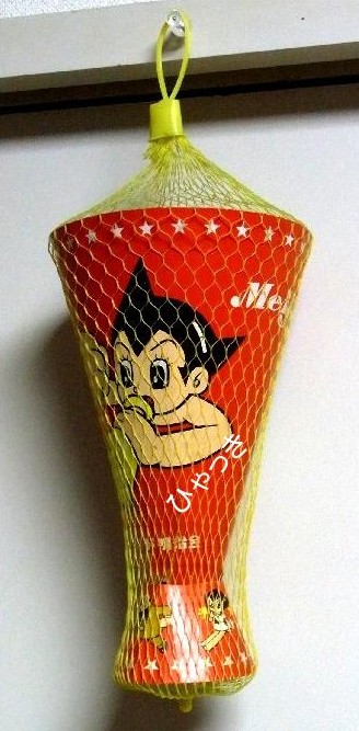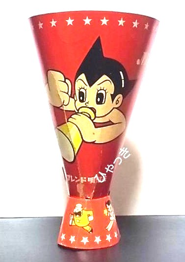 | 明治製菓のメガホン型の菓子容器です。この中に明治製菓の色々なお菓子が入れられていてセットで販売されていたと思われます。 フレンド明治会という字が印刷されているので、特別なお菓子販売会などで配られた可能性もあります。アトムが一生懸命応援している絵が描かれているので、もしかしたら企業スポーツの応援に使ったのでしょうか? 今でもクリスマスなどにこのようなお菓子セットが販売されていますが、期間限定なので残存数は少ないと思います。 |