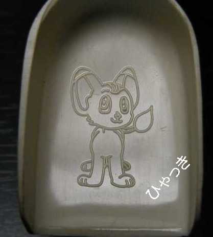 | Fig.3に示したのは、缶の中に入れられていたものです。 ココアの粉末の袋の他に、悟空の大冒険に登場するキャラクターのポリ製人形容器とスプーンが入っていました。さらに人形容器の中に、もっと小さなおもちゃが入っていました。 |