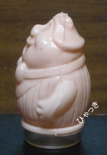 | ポリ人形の中には、いろいろなおもちゃが入っていました。乗り物が多かったようですが、上のように三蔵らしき人形も入っていました。三蔵以外のキャラがあったらいいですね。 |